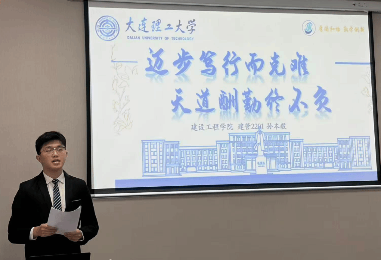 我是孙本毅,来自江苏省徐州市。怀揣对工程管理专业的热忱,我始终以"卓越"为目标,在学业道路上不断攀登。三年来,我的学习成绩及综合成绩位列专业第一,运筹学、工程经济学等核心课程成绩均在90分以上,连续两年荣获国家奖学金及三好学生称号。