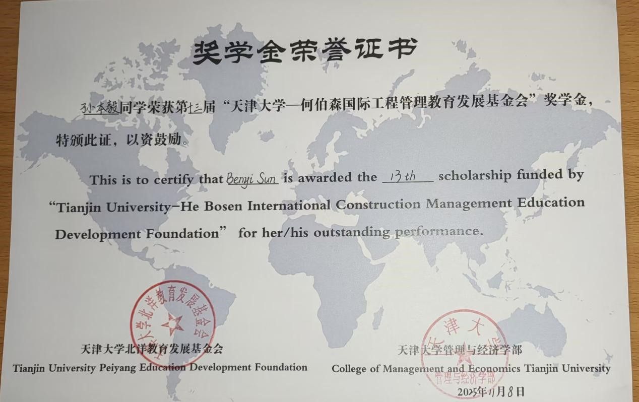 未来,我将以更加严谨务实的态度钻研学术、提升能力,走好科研道路上的每一步,努力成长为一名优秀的建工人、大工人。